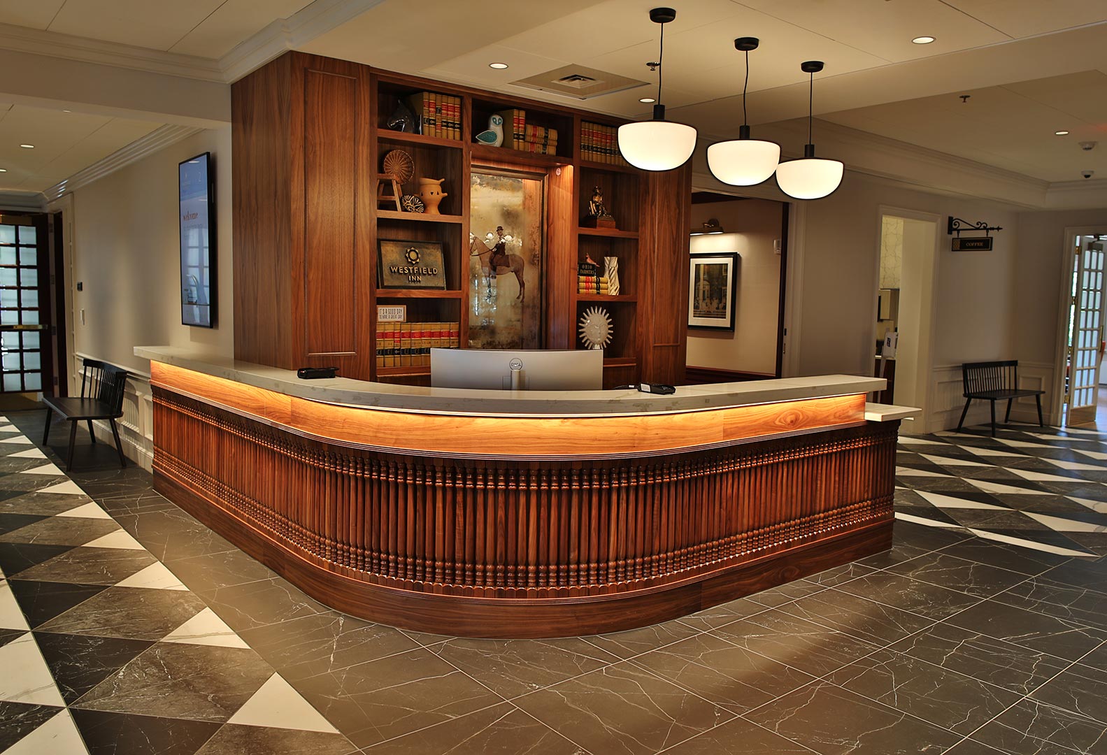 Welcome to the newly renovated Georgian-style 64-room Westfield Inn, where historical charm meets contemporary elegance. Our luxurious accommodations and thoughtful amenities are designed to make you feel at home. The Inn features warm and inviting common areas with fireplaces and comfortable seating, creating a cozy and welcoming atmosphere. Whether you want to relax and catch up with friends in our oversized lounge chairs or enjoy a game of pool with colleagues, our shared spaces offer something for everyone. A market is conveniently located near the front desk, offering snacks, beverages, sundries, and specialty products from local vendors.