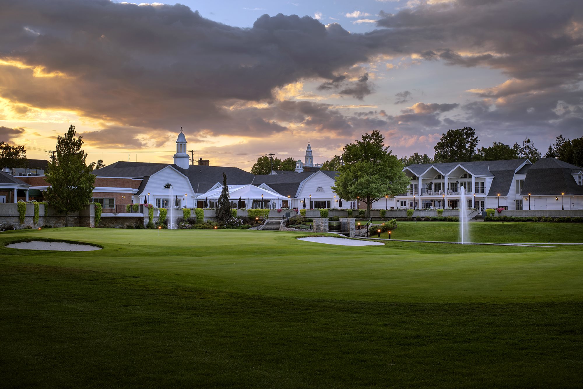 Flexible, open-concept outdoor event spaces with tented patio and championship golf course views